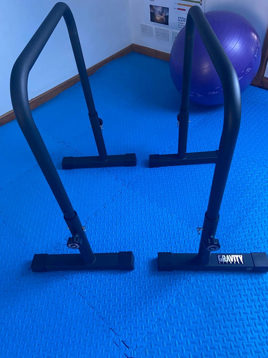 - Powder-coated steel XL parallettes