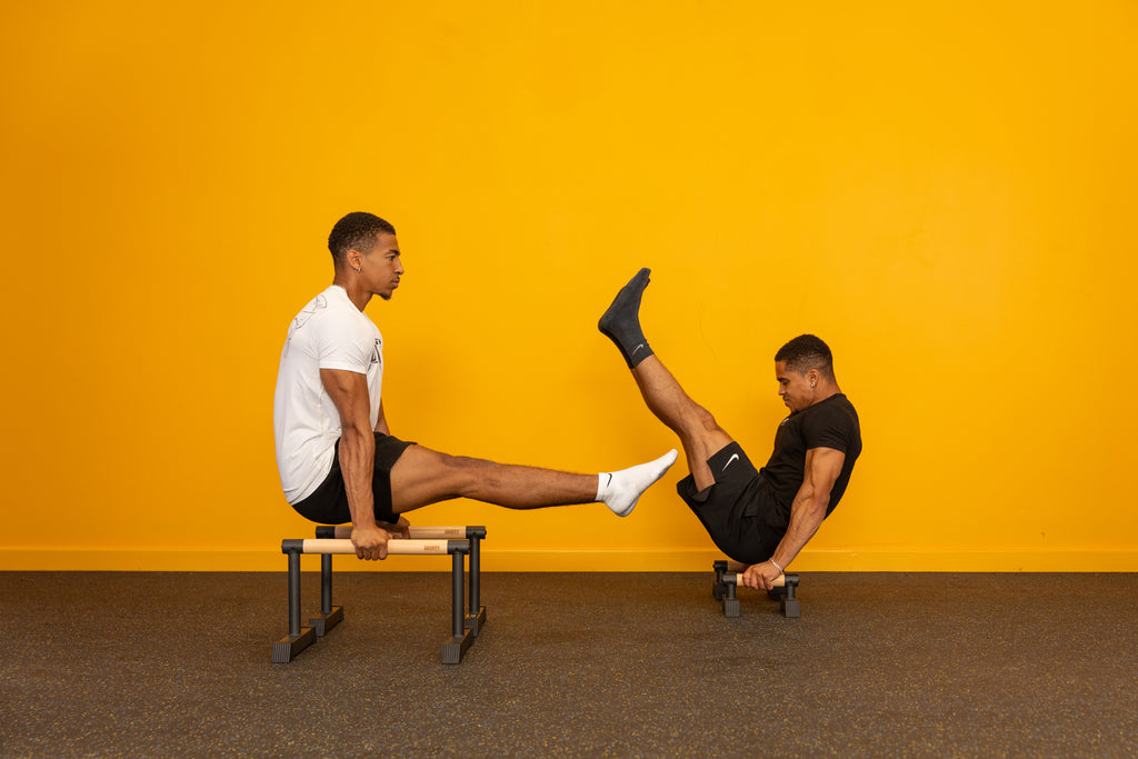 Parallettes are portable bars used to elevate your body during push-ups, dips, L-sits, and advanced calisthenics skills. Think of them as mini parallel bars — only compact, sturdy, and incredibly versatile.