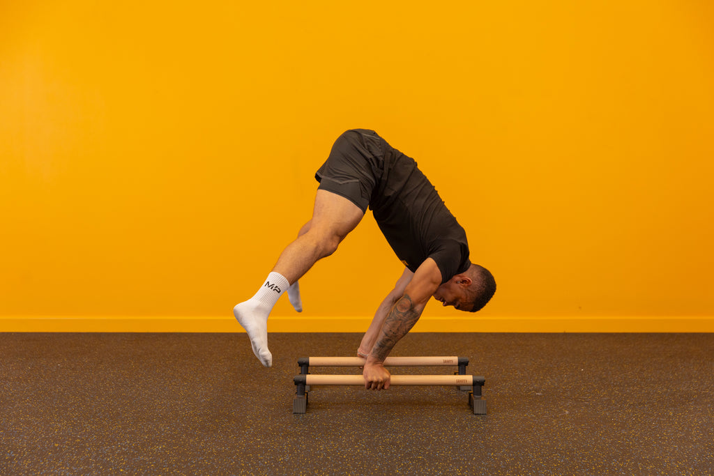 Parallettes: Ultra-compact, perfect for floor work, L-sits, and portable training. Not tall enough for dips.